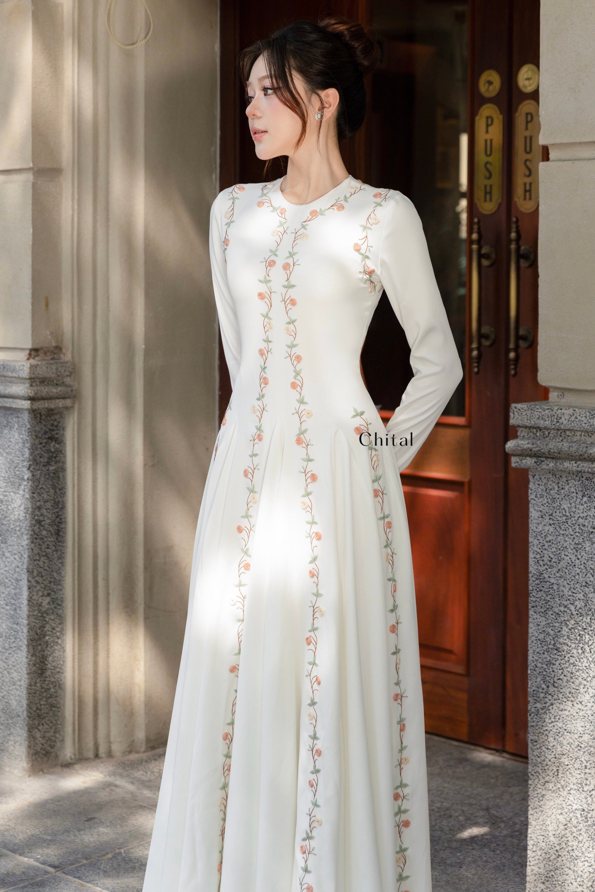 White Floral Hand-Embroidered Maxi Dress